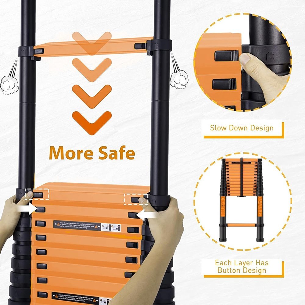 سلم ألمنيوم تلسكوبي مستورد قابل للتعديل بطول 3.8 متر – سلم مفرد موديل: YT-ATS380