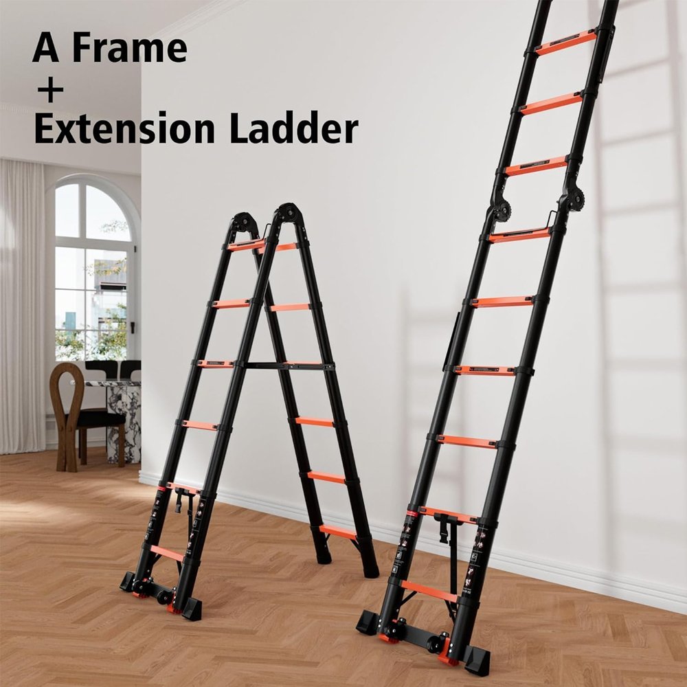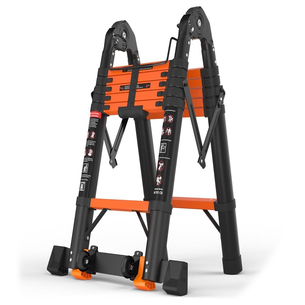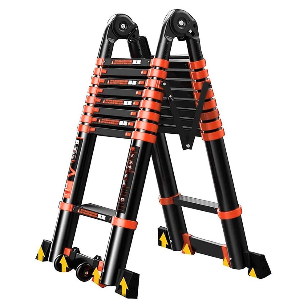 سلم حديد كربوني تلسكوبي مستورد متعدد الجوانب، قابل للتعديل، بطول 1.4 متر، بدرجات من الجانبين موديل: YT-CTA140