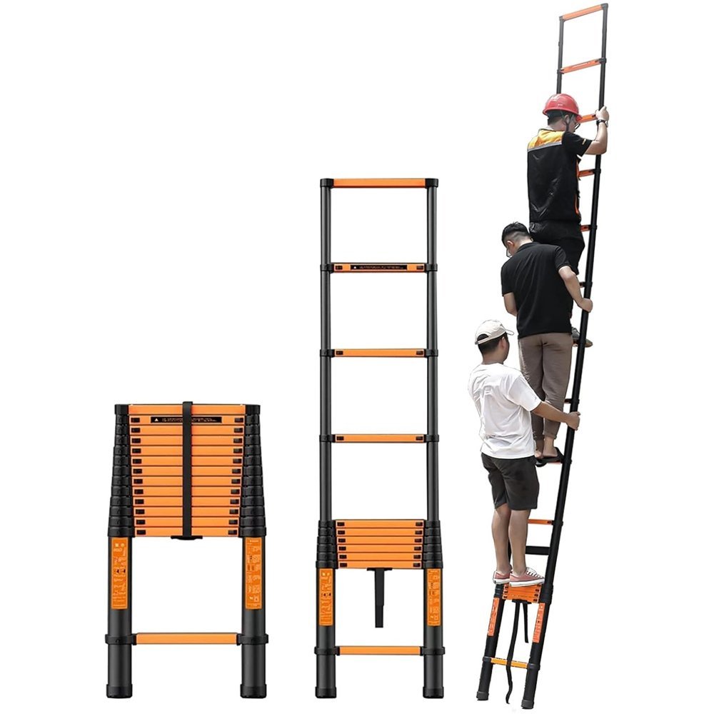 سلم حديد كربوني تلسكوبي مستورد قابل للتعديل بطول 2.3 متر – سلم مفرد موديل: YT-CTS230