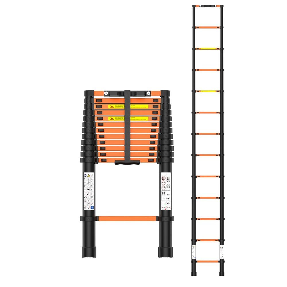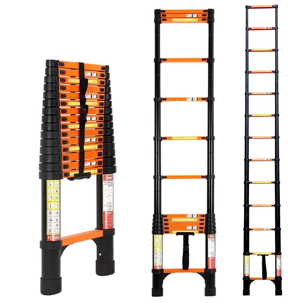 سلم حديد كربوني تلسكوبي مستورد قابل للتعديل بطول 3.9 متر – سلم مفرد موديل: YT-CTS390