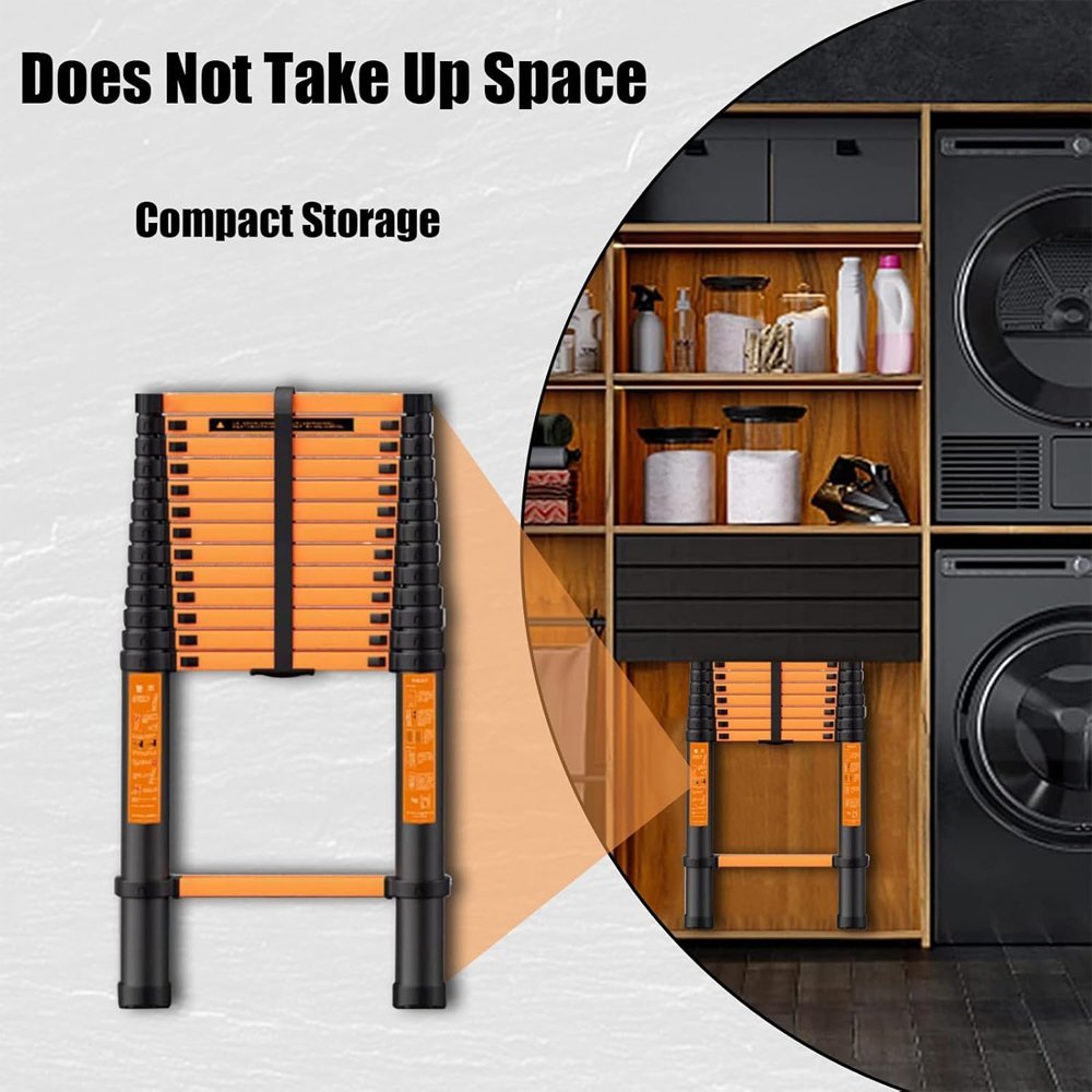 سلم حديد كربوني تلسكوبي مستورد قابل للتعديل بطول 3.9 متر – سلم مفرد موديل: YT-CTS390 عالي الجودة، عملي وآمن، مناسب لأعمال الصيانة والاستخدام المنزلي والمهني.